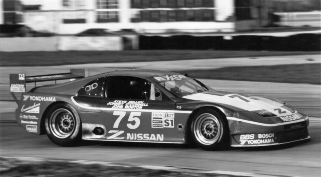 The engine out of the Nissan GTP car got “shoe-horned” into the 300ZX body of the IMSA GTS car and also proved to be stunningly successful. Here Morton is on his way to winning the 1994 12 Hours of Sebring with co-drivers Steve Millen and Johnny O’Connell.