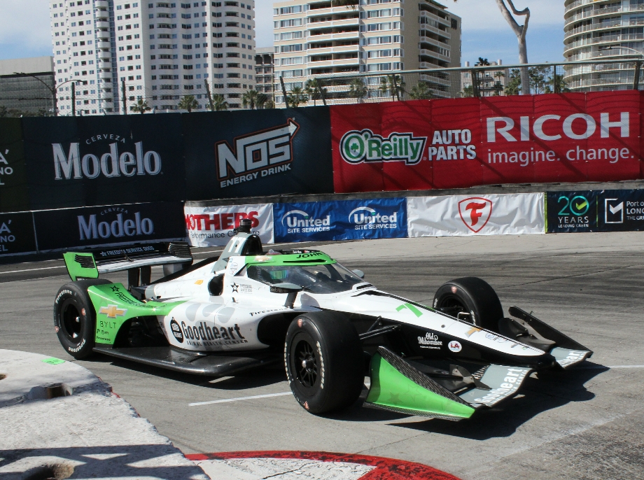 Making his way around the tightest corner of the season, the Turn 11 hairpin at Long Beach, Robb also sported an LA Strong sticker on the front of his car supporting the firefighters, first responders and those that were affected by the January wild fire devastation.
