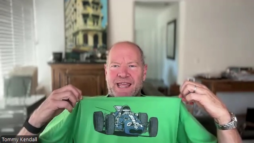 Casually dressed for our interview, Kendall shows off one of his favorite T-shirts. This is a tribute to his late friend and incredible racer – Dan Gurney.