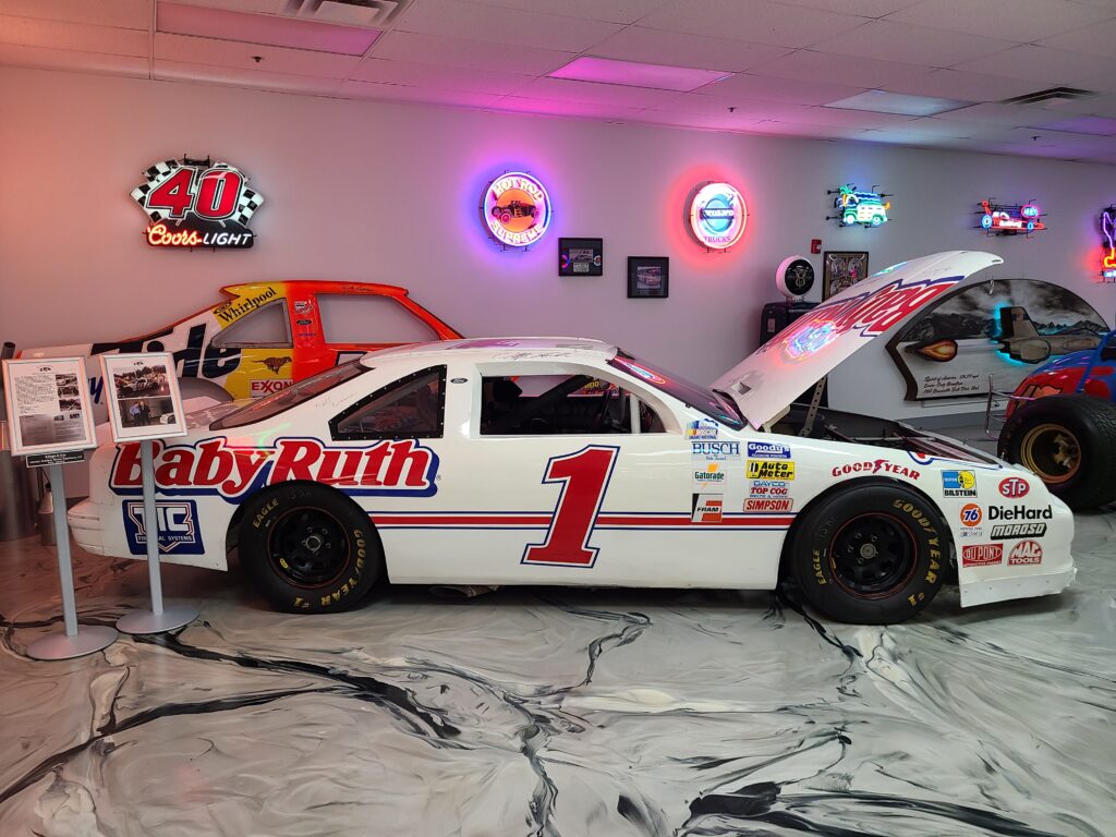 An original Bill Davis Racing, Baby Ruth Chevrolet, raced by (and autographed by) Jeff Gordon at the start of his career. Besides this NASCAR Grand National race car, there’s also a cutaway stock car along with numerous other sprint cars and race cars.