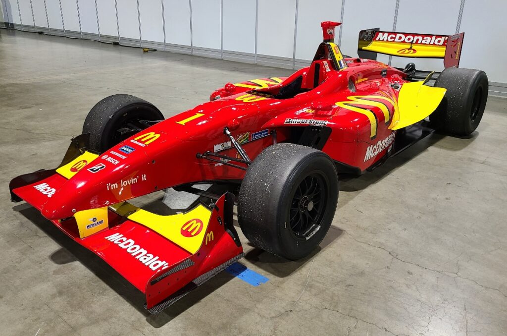Tim Coffeen is shown here kneeling down getting ready to start Jordan Roddy’s (last week’s raceschool.com podcast interviewee) McDonald’s Indy car.